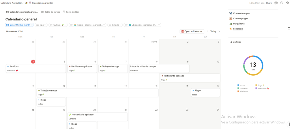 Tras hablar con algunos de vosotros he decidido crear una plantilla de calendario agrícola 🗓️, donde podéis marcar, desde vuestras visitas👩🌾, Fitos 🧪, fertilizantes 💩 hasta llevar un conteo de las trampas o un conteo de las plagas etc.